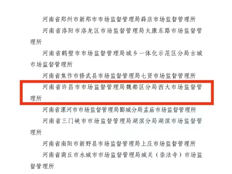 近日,市场监管总局印发《关于五星市场监督管理所评定结果的通报》,公布首批五星市场监督管理所名单。河南省共有10个市场监管所被评为五星市场监督管理所,魏都区分局西大市场监管所为世界杯投注唯一获此殊荣市场监管所。五星所是在全国范围内具有引领作用,标准化规范化建设取得显著成效的市场监管所,评定标准包括履职绩效、党建引领、内部管理、队伍建设、基础保障等方面。