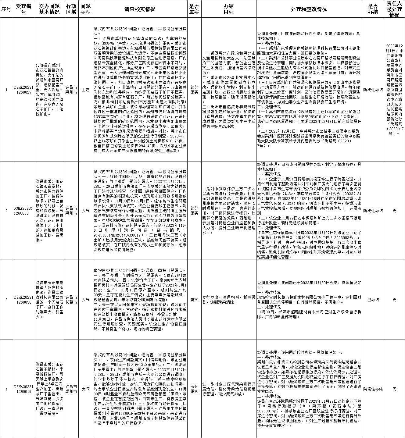 中央生态环境保护督察群众信访举报转办和边督边改公开情况一览表(第五批)