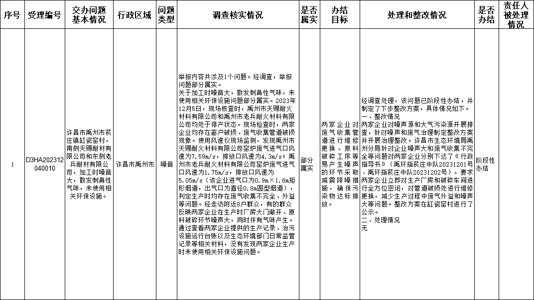 中央生态环境保护督察组群众信访举报转办和边督边改公开情况一览表(第十三批)