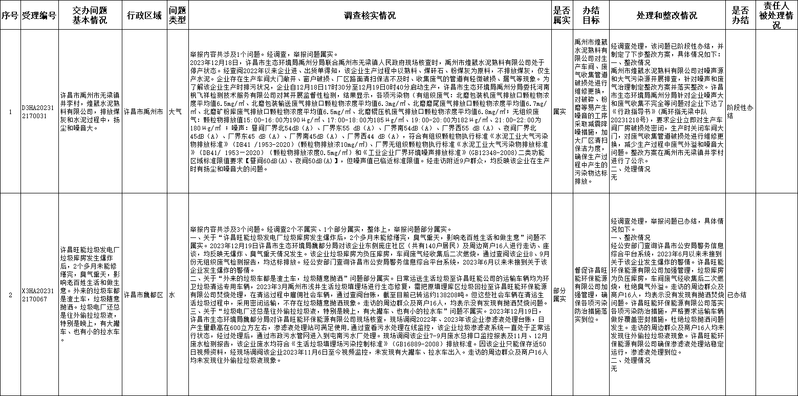 中央生态环境保护督察组群众信访举报转办和边督边改公开情况一览表(第二十六批)