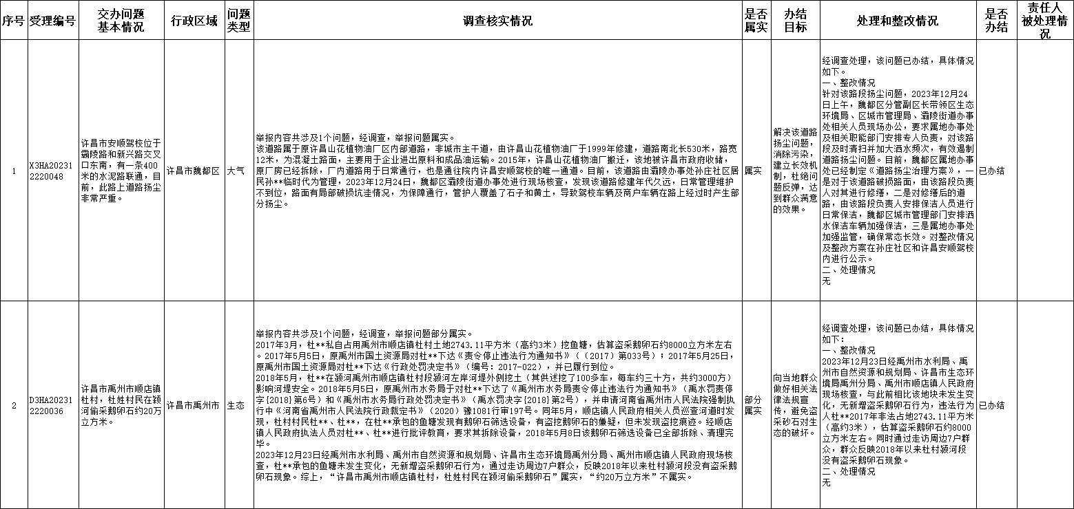 中央生态环境保护督察组群众信访举报转办和边督边改公开情况一览表(第二十九批)