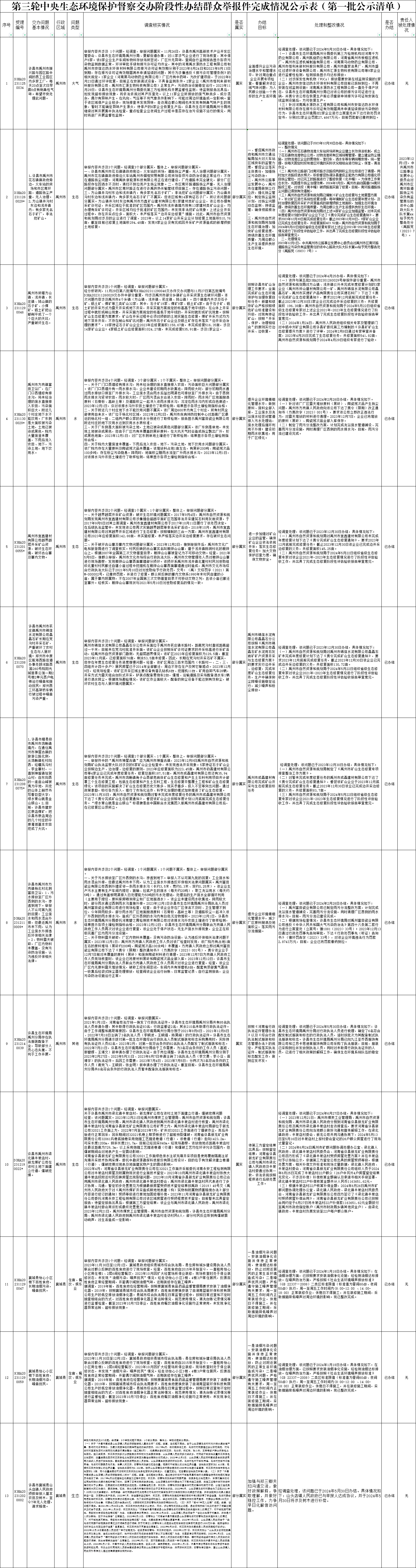 第三轮中央生态环境保护督察交办阶段性办结群众举报件完成情况公示表(第一批公示清单)