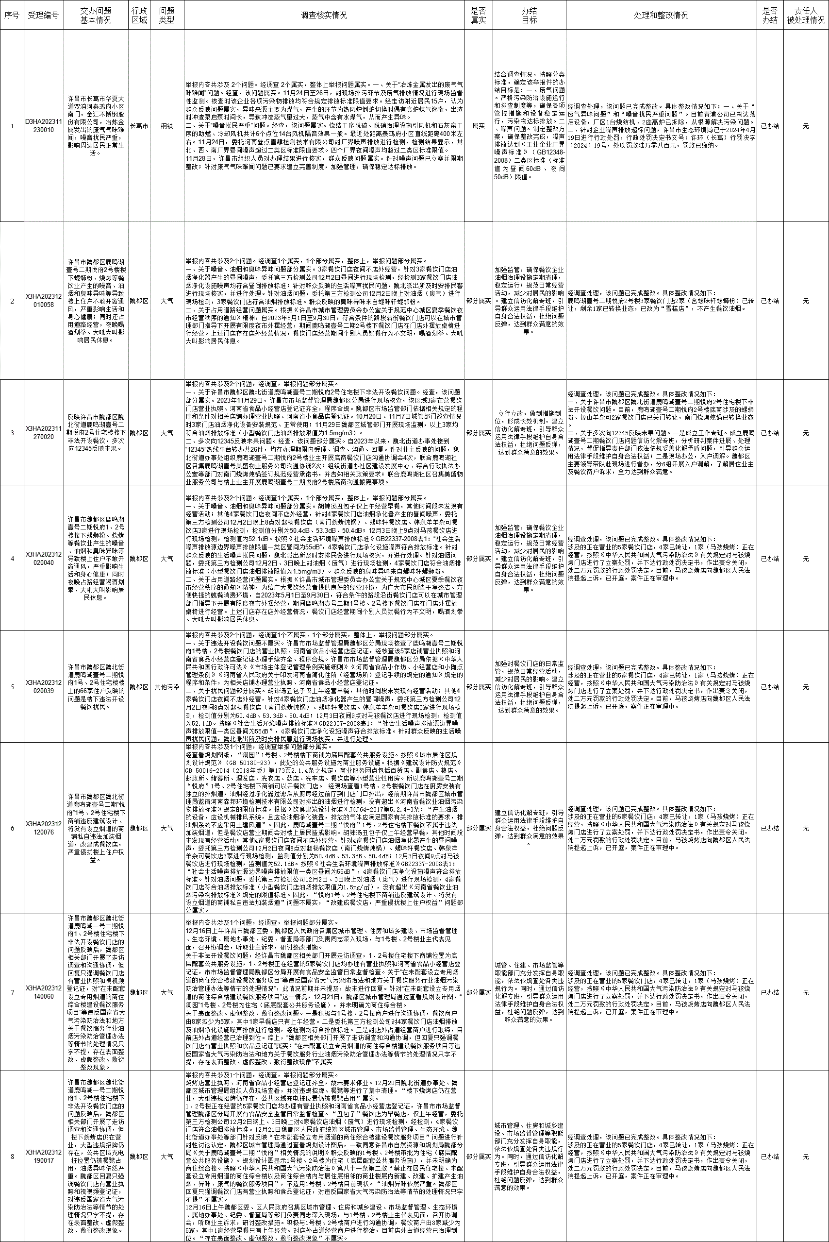 第三轮中央生态环境保护督察交办阶段性办结群众举报件完成情况公示表(第七批公示清单)